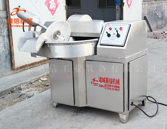 斬拌機(jī)利用斬刀高速旋轉(zhuǎn)的斬切作用,將肉塊,碎肉,脂肪等主要原料精細(xì)的斬切成肉餡或肉泥,同時(shí)將其它原料如水,冰片,輔料一起攪拌成均勻的乳狀物。斬刀高速旋轉(zhuǎn),可以縮短運(yùn)行時(shí)間,減少物料發(fā)熱量,保持餡料的天然色澤、彈性、出品率和產(chǎn)品的保質(zhì)期。