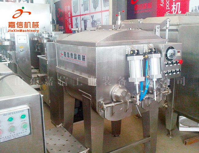 真空拌餡機(jī)是肉質(zhì)食品加工設(shè)備中常見的設(shè)備,其主要用途是將各種不同大小規(guī)格的原料肉粒與淀粉,香辛料,添加劑等輔料按工藝配方要求進(jìn)行混合,攪拌,使他們充分均勻地進(jìn)行混合,同時(shí)還能起到肉料嫩化與蛋白活化的功能,可滿足不同種類肉制品深加工需要。真空拌餡機(jī)實(shí)在消化吸收當(dāng)今歐洲肉制品加工技術(shù),同時(shí)結(jié)合我國國情并發(fā)揮本公司特長的基礎(chǔ)上研制而成。