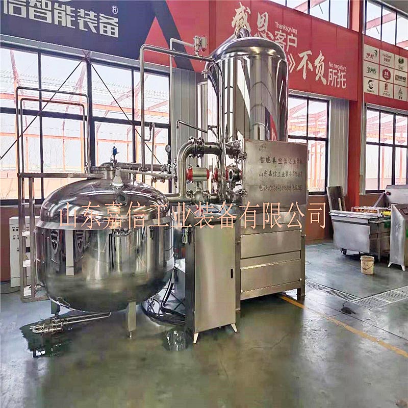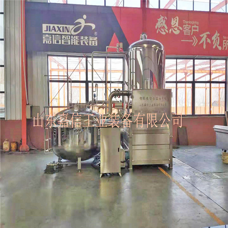 真空低溫油炸設(shè)備加熱方式采用蒸汽加熱。以蒸汽作為加熱介質(zhì),比較適合一定規(guī)模的工業(yè)化生產(chǎn)。其加熱器是螺旋盤管與夾套相結(jié)合,直接與炸油換熱。使用這一方式的特點是熱力足,特別是在炸品進入釜體以后炸油溫度下降較多時,加大蒸汽供應(yīng)可以滿足加工時對熱量的需求。