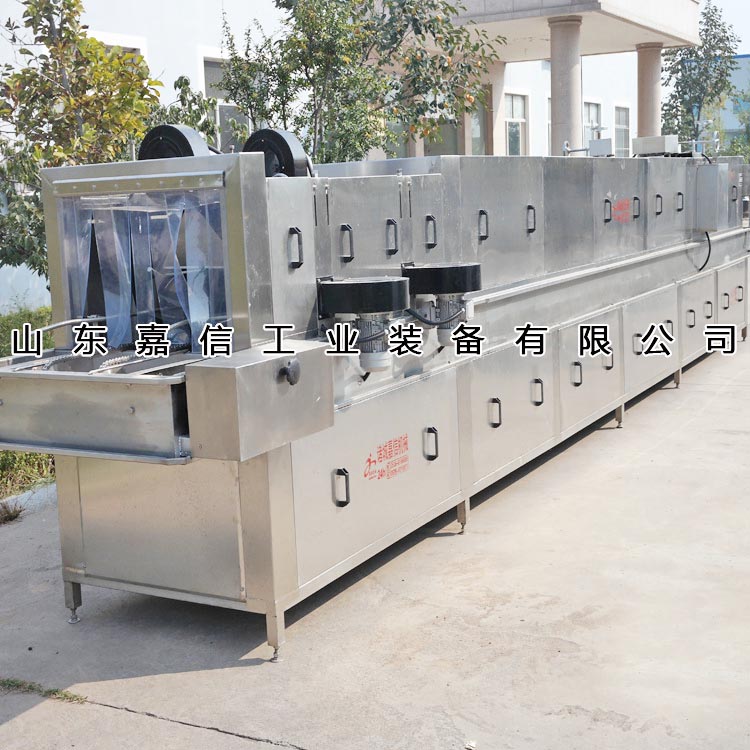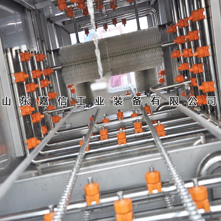 本機(jī)開(kāi)啟后,由人工送料到噴淋清洗機(jī)鏈條軌道或由輸送連接自動(dòng)進(jìn)料,先堿液噴淋,然后熱水噴淋,再進(jìn)行清水循環(huán)噴淋,消毒水噴淋。四組各自獨(dú)立,外置循環(huán)水箱,過(guò)濾網(wǎng)可方便抽取。周轉(zhuǎn)箱沖洗進(jìn)出口由人工操作。